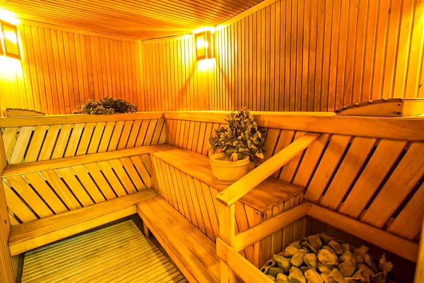 Чтобы оздоровить и укрепить свой организм, здесь можно не только дышать чистейшим воздухом и прогуливаться по обширной территории парка, но и посетить небольшую, но комфортабельную сауну со своей купелью, душем и комнатой отдыха.