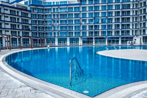 На территории отеля есть бассейн, СПА-зона и шикарный аквапарк «Зурбаган» с многочисленными горками, кафе, зонами для отдыха.