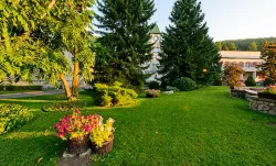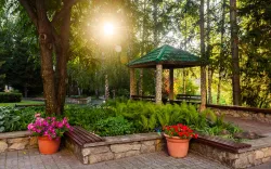 На территории санатория «Алтай-West» царит прекрасная обстановка. Создан благоухающий парк площадью в 5 га, который пролегает вдоль реки. А над ней возвышается величественный мост. В ландшафтном дизайне гармонично расположились зоны отдыха, прогулочные дорожки и терренкуры с разными маршрутами.