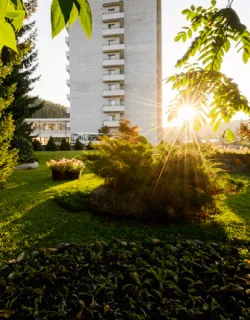 • Питание в четырех форматах. В обеденных залах действуют системы «шведский стол» и «заказное меню». Также в рационе присутствуют диетические и детские блюда с дополнительными полдниками. Питание 3-разовое с 2-часовыми трапезами. На территории санатория работают лобби-бар и фито-бутик.