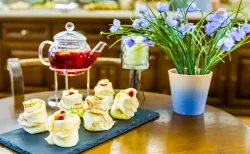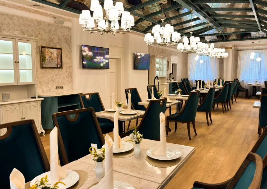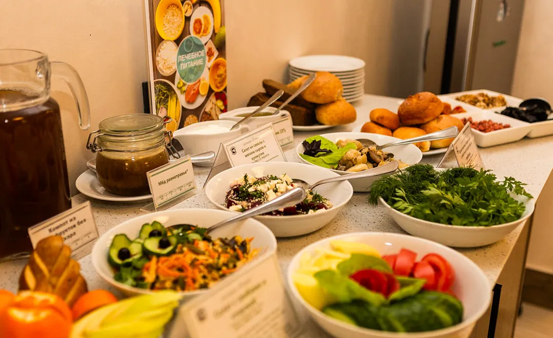 • Питание в четырех форматах. В обеденных залах действуют системы «шведский стол» и «заказное меню». Также в рационе присутствуют диетические и детские блюда с дополнительными полдниками. Питание 3-разовое с 2-часовыми трапезами. На территории санатория работают лобби-бар и фито-бутик.