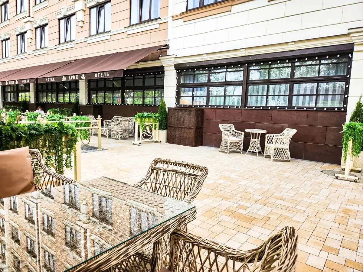 Отель «Ария» находится в центре г. Кисловодск. В нескольких минутах ходьбы от гостиницы расположены главные туристические места города: Курортный парк, Каскадная лестница, питьевые галереи. Отель расположен в историческом здании, где была проведена масштабная реставрация. Обновлены все коммуникации, полностью отремонтирован номерной фонд, везде установлена новая сантехника. На данный момент в каждом номере и общественных местах оборудована пожарная сигнализация с современными датчиками. Для отдыхающих предусмотрено 100 номеров от категории комфортности «Стандарт» до «Люкс». В отеле действует несколько номеров, где можно будет разместиться с домашним питомцем. Такое заселение требует предварительного согласования с администрацией.