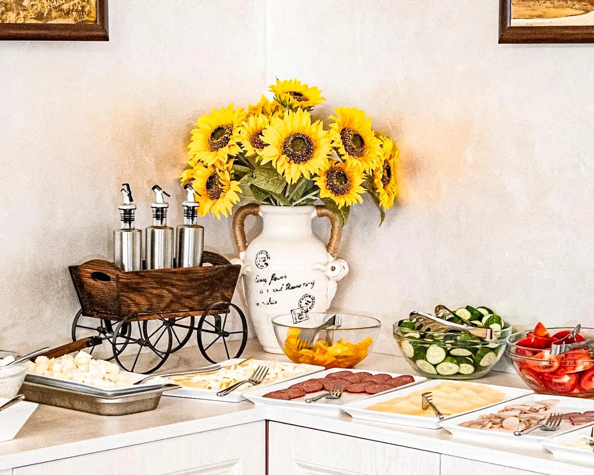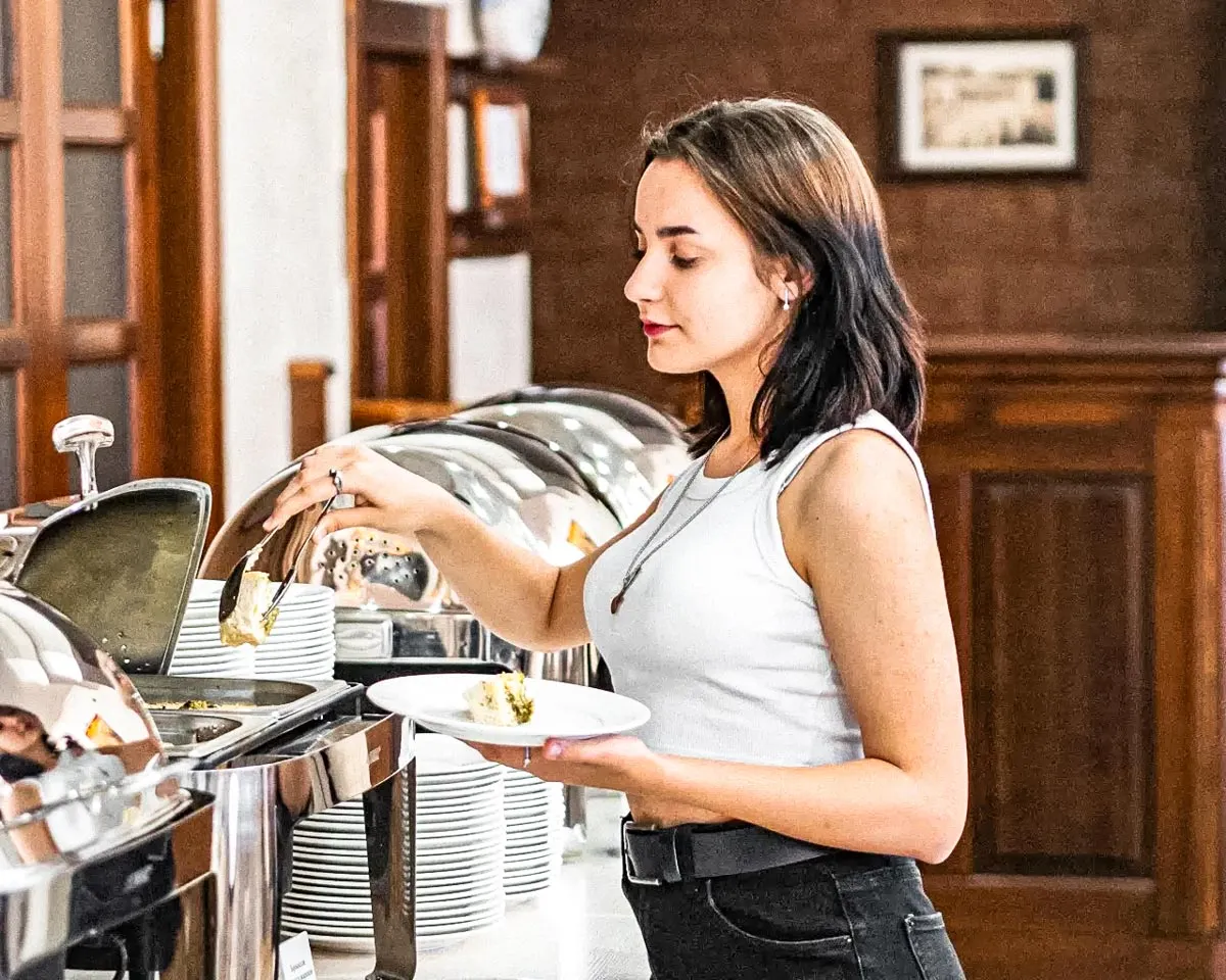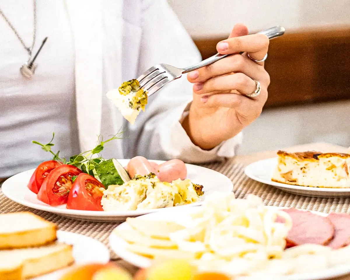 Отель «Ария» г. Кисловодск предоставляет своим гостям в рамках проживания завтраки по системе «шведский стол». Питание предоставляется в ресторане «Мелодия». Все блюда готовятся непосредственно в отеле, поэтому свежесть и сохранность всех витаминов гарантирована профессионализмом поваров. Для приготовления еды используются экологически чистые продукты местных производителей. Для детей не предусмотрено отдельное меню, однако вы обязательно сможете найти подходящие блюда из представленного ассортимента.