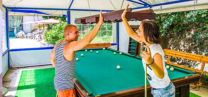Спортсменам и любителям активностей подойдут такие мероприятия, как игры на спортивных площадках и теннисных столах. А бильярд станет излюбленным местом для вечернего времени.