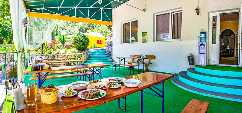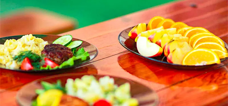 Трёхразовое питание, включённое в стоимость путёвки, – это достойное преимущество и особенность сервиса в пансионате «Ай-Лия». Практически нигде в Алуште и окрестностях нет такого сервиса, так как в комплексе внедрили уникальную систему питания, включающую не только заказ по меню, но и бесплатные комплименты, которые можно взять, как на шведском столе. Это делает отдых максимально комфортным для всех гостей. В кафе с двумя просторными и светлыми залами предоставляются горячие (чай, кофе, какао) и прохладительные напитки, свежие сезонные фрукты и овощи, выпечка и другие сладости, кефир и многое другое. Такой безлимит станет приятным дополнением к основному приёму пищи.