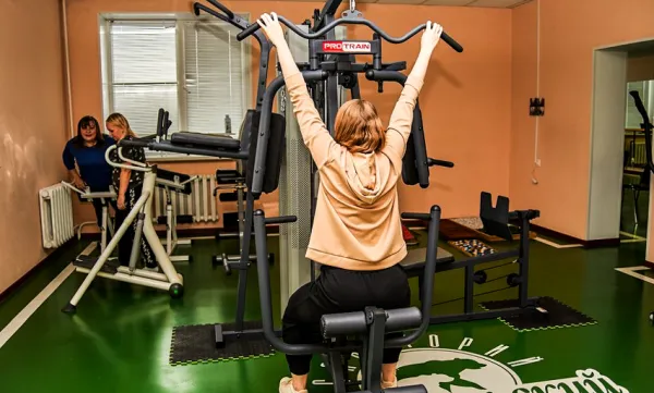 Поплавать можно и в просторном бассейне размером 25×9 метров. Дно в нем создано с перепадами, поэтому глубина резервуара варьируется от 200 до 450 см. Вода в бассейне регулярно очищается и поддерживается комфортной температуры для посетителей. Физической активностью удобно заниматься в спортивном зале. Размер данного помещения составляет 18×36 метров, а высота потолка – 10 метров, что дает полную свободу действий для любых фитнес-тренировок.