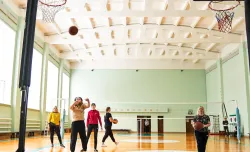 - Фитнес-досуг. В спортивном зале санатория размером 18×36 м и высотой потолков 10 м оборудованы площадки для игры в баскетбол, волейбол, бадминтон и настольный теннис. На полу выложено защитное покрытие для предотвращения травм при падениях. В пункте проката в аренду выдается спортинвентарь.