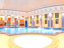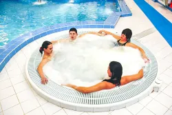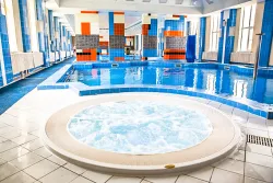 Wellness-центр представлен бассейном с искусственной волной, противопотоком. В целях оздоровления можно посетить соляную пещеру, турбосолярий, баню и сауну.