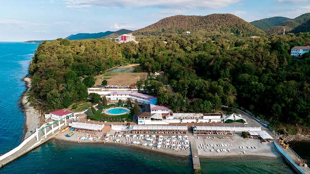 - Близость к морю. Рядом с корпусами проложены прогулочные дорожки, по одной из которых можно пройти к морю. На берегу расположен оборудованный пляжный комплекс с шезлонгами, навесами от солнца, смотровой беседкой, раздевалкой с душем и туалетом, кафе и пунктом проката водного транспорта.