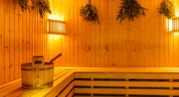 - Банный комплекс. В санатории работает атмосферный термальный центр, где находятся традиционно оформленные русская баня, финская сауна и турецкий хамам. К парным прилагается бассейн с водными аттракционами. Для гостей составлено два курса красоты – «Египетская царица» и «SPA-путешествие».