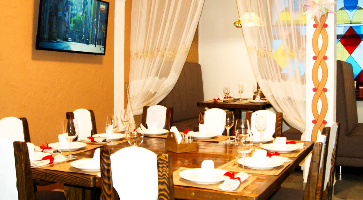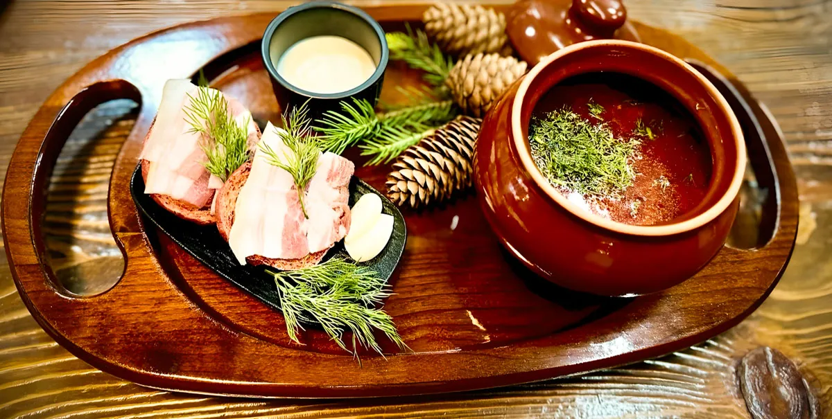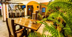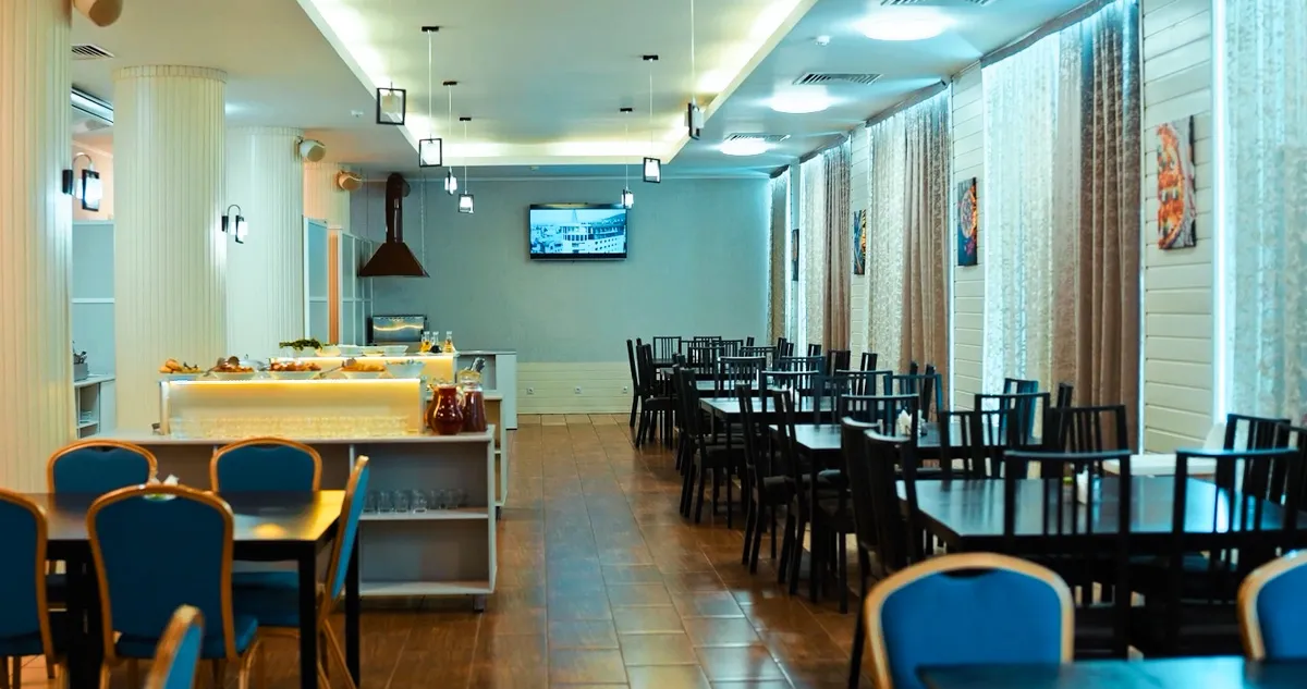- Питание в ресторане. Трапезы организуются в колоритном ресторане «Тридевятое царство», где присутствует атмосфера русского духа. Меню соответствует общей концептуальной идее и содержит традиционные блюда русской кухни в широчайшем ассортименте. Предусмотрен и диетический рацион.