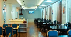 Номера первой категории оформлены в стиле минимализма, маленькие порции в ресторане.