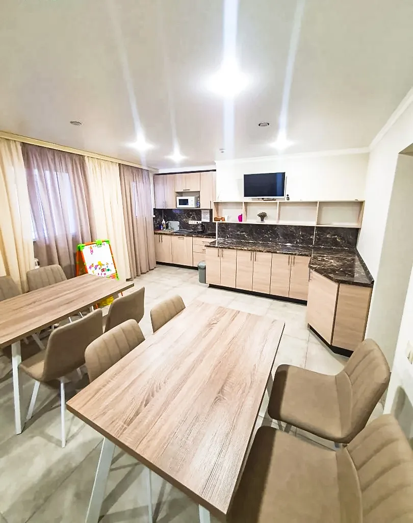 • Кухня-столовая с мебелью, посудой и плитой, где отдыхающие смогут приготовить себе еду