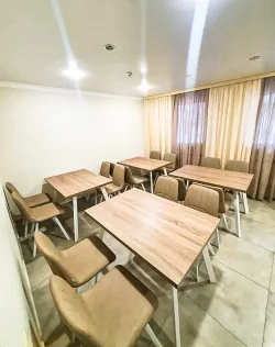 В пансионате «Бешпагир» г. Кисловодск для организации питания отдыхающих оборудована столовая с кухонными принадлежностями. Здесь есть зона приёма пищи и зона готовки. В кухонной зоне установлена мойка, плита, микроволновая печь, электрический чайник, есть кухонные шкафы, большая столешница, столовые приборы, необходимая посуда. На стене имеется телевизор. В обеденной зоне предусмотрены столы и стулья. Для хранения собственных продуктов каждый номер оборудован холодильником.