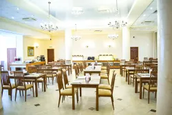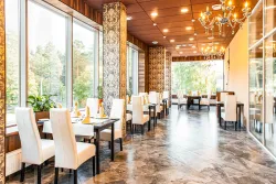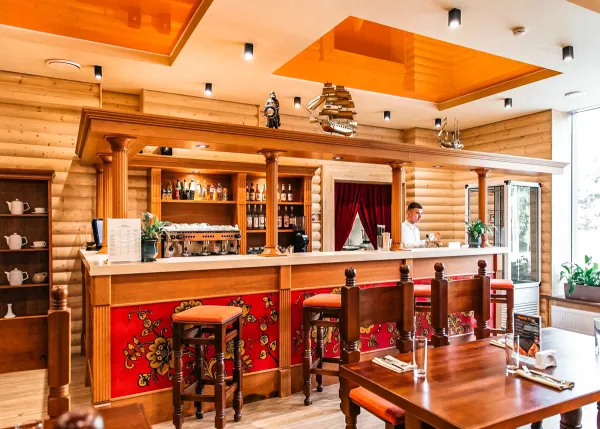 Рестораны, кафе и бары комплекса предлагают комфортную атмосферу для приема пищи, что способствует расслаблению и наслаждению процессом питания. Таким образом, на территории отеля есть ресторан «Московия», бар «Дионис» и ресторанный комплекс. Все представленные помещения красиво оформлены, они подходят как для основного питания гостей, так и для организации свадеб и других торжественных мероприятий.