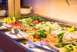 Основное питание «всё включено» в рамках шведского стола предоставляется гостям 3 раза в день. Система «шведский стол» позволяет гостям выбирать блюда по своему вкусу и следить за разнообразием рациона.