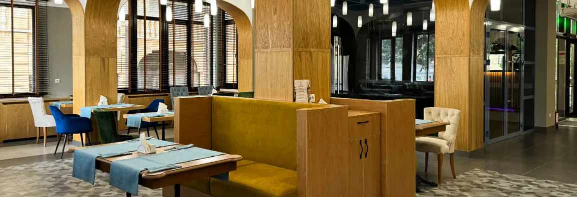 В отеле «Бугарь» в г. Ессентуки питание организовано с акцентом на качество и разнообразие, что позволяет удовлетворить потребности самых взыскательных гостей. Центральное место в гастрономической концепции занимает ресторан, который предлагает широкий выбор блюд как местной, так и международной кухни. Здесь гости могут насладиться завтраком, который уже включён в проживание, а также обедом и ужином по запросу, в уютной атмосфере, где внимание к деталям и высокое качество ингредиентов играют ключевую роль.