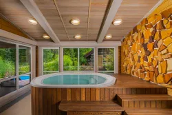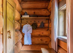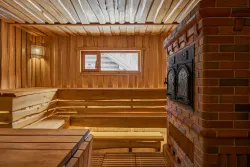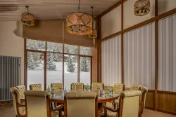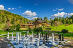 - Проживание в коттеджах. Для проживания гостей предусмотрены люксовые номера и 36 вилл-шале площадью до 300 кв. м. В уютных домиках предусмотрены индивидуальные спальни с уборными, а также общие гостиные со столовой и лаунж-зонами, атмосферные камины и террасы с видом на английские сады.