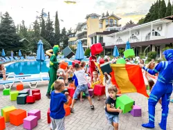Для маленьких гостей отеля работает детский клуб «Лимпопо» — один из самых больших в Алуште. На территории клуба функционируют лабиринт, батут, аэрохоккей, скалодром, веселые горки и др.