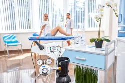 - Большое разнообразие физиотерапевтических процедур. Речь идет о различных физиотерапевтических процедурах, включающих электрофорез, магнитотерапию, амплипульсотерапию, дарсонваль, ультразвуковую терапию и другие методы лечения.