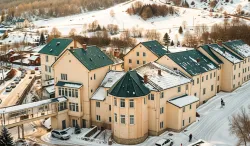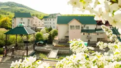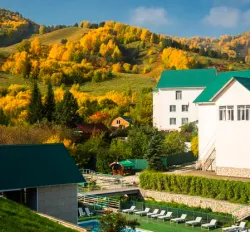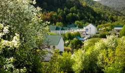 - Живописная природа. Курорт располагается между склонов зеленых холмов и окружен хвойными лесами. Воздух здесь отличается свежестью и уникальным составом с полезными эфирами. Рядом протекает горная река, из которой бьют ключи с целебной минеральной водой. Всё это создает особую энергетику.