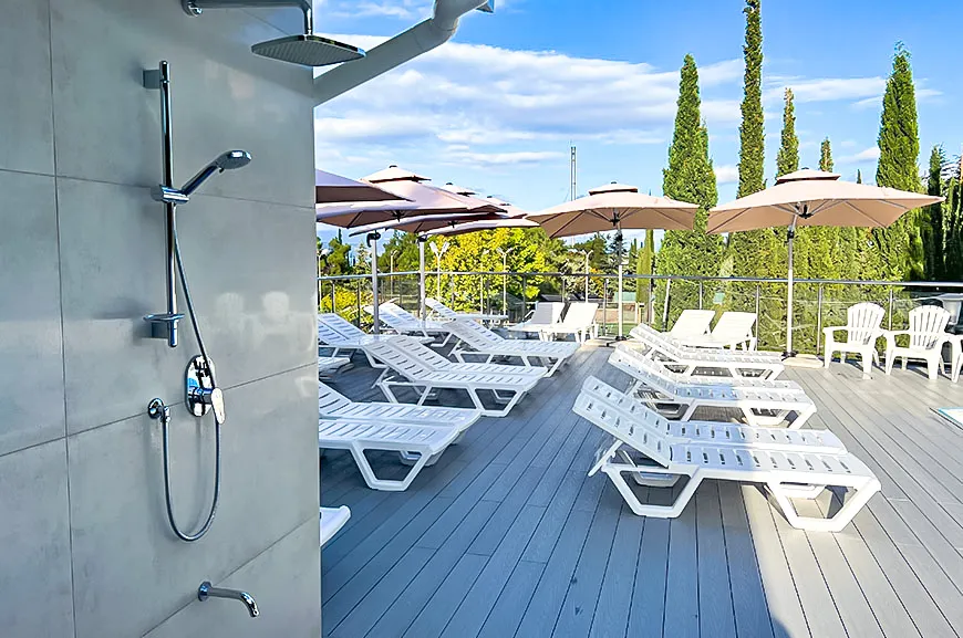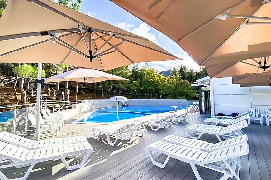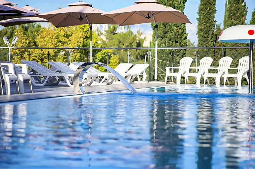 Бассейн с подогревом — это идеальное место для расслабления и активного отдыха. Бассейн оборудован современными системами очистки и подогрева воды, что позволяет гостям наслаждаться купанием в любое время года. Вокруг бассейна расположены шезлонги и зонтики, где можно комфортно отдохнуть и насладиться солнечными ваннами.