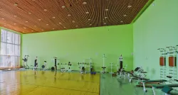 В спортивном комплексе для приятного времяпровождения услуги предоставляют: бильярдный зал, сауна, тренажерный зал, ЛФК, теннисный корт, волейбольная площадка.