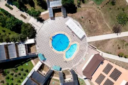 Пляж санатория оборудован шезлонгами, столиками, навесами и зонтами. Также есть душевые, раздевалки и туалеты. Песчаное дно позволит купаться в море даже самым маленьким детям. О безопасности гостей заботится служба охраны. Климат региона позволяет лечиться здесь круглый год. Даже зимняя погода не омрачит ваш отдых, так как температура в поселке очень редко опускается ниже +7°С.