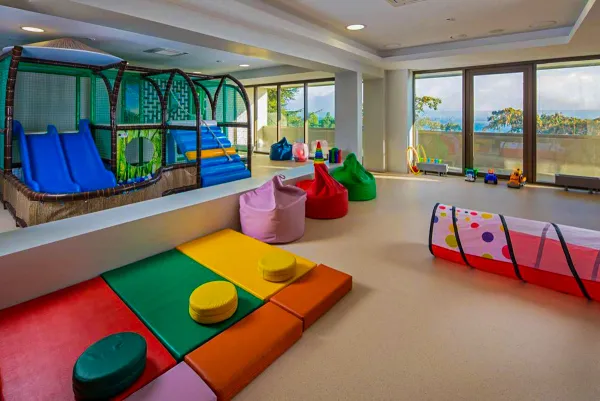 Для детей предусмотрена специальная детская комната, оборудованная игровыми зонами, развивающими играми и игрушками. Здесь маленькие гости могут проводить время под присмотром квалифицированных аниматоров, участвуя в различных мероприятиях и мастер-классах. Анимационная программа включает конкурсы, викторины, спортивные игры и творческие занятия, которые помогут детям весело провести время и найти новых друзей.