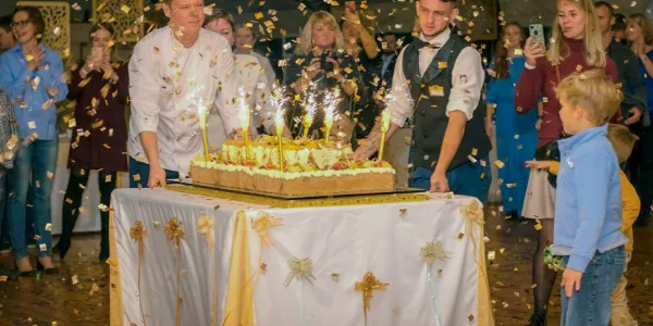 Питание гостей организовано в уютном зале ресторана (на первом этаже конференц-зала). По периметру зала установлены столы с блюдами и напитками, которые входят в состав шведской линии. Гости могут лично выбрать подходящие блюда, самостоятельно регулируя объем порций. «Шведский стол» представлен разнообразным меню, в том числе диетическим и детским.