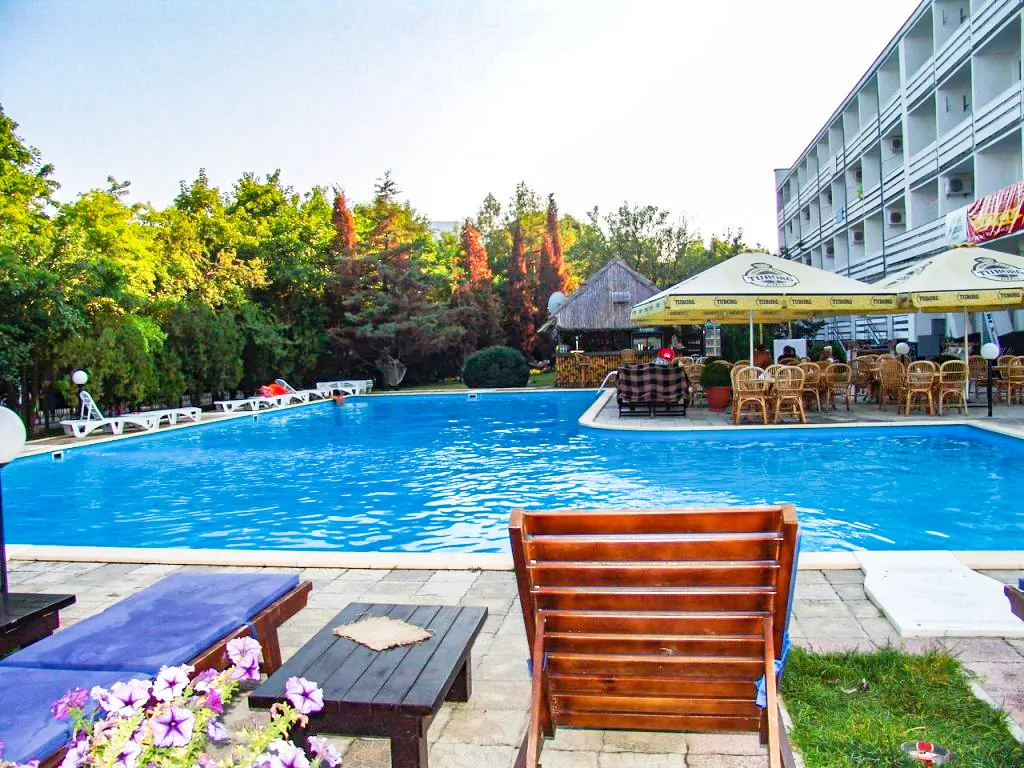 В пансионате функционирует большой открытый бассейн. Он подходит для купания взрослых и детей. Расположен возле 4-го корпуса. Вода в бассейне проходит многоуровневую очистку. В бассейне имеется удобный заход в воду. Рядом расположена зона отдыха и приема солнечных ванн. Оборудована площадка лежаками и зонами от солнца. В бассейне проводятся групповые занятия по аквааэробике.