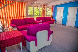 Для малышей и школьников дополнительно подготовлены детская комната, творческие студии и яркий городок на улице. А для взрослых, которые желают поддерживать свое тело в форме, работают современный тренажерный зал, волейбольная и баскетбольная площадки под открытым небом. Также можно поиграть в настольный теннис и бильярд.