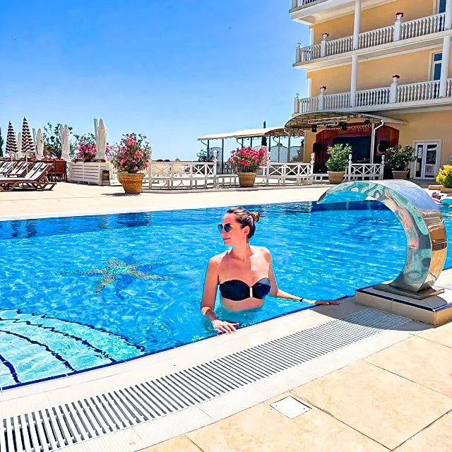 Прежде всего, привлекает внимание гостей шикарная аквазона. На территории расположены два бассейна с пресной водой. Вода в бассейне проходит трёхуровневую систему очистки, при необходимости подогревается. Вокруг плавательной зоны установлены лежаки, теневые навесы. Работает аквабар, в котором предлагаются разнообразные прохладительные напитки. Для любителей активного отдыха, каждое утро в бассейне проводятся групповые занятия аквааэробикой. Также организовываются экскурсии.