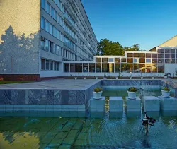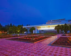 - Удобное расположение в центре города. Сюда можно легко и быстро добраться с автовокзала, железнодорожной станции Ессентуки: на маршрутном, легковом такси или даже пешком – расстояние составляет около 1 км. Рядом с санаторием «Калинина» расположился просторный Курортный парк со множеством достопримечательностей и интересных объектов, в шаговой доступности от здравницы – торговые объекты, места общественного питания, концертный зал имени Шаляпина, музей;