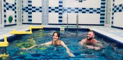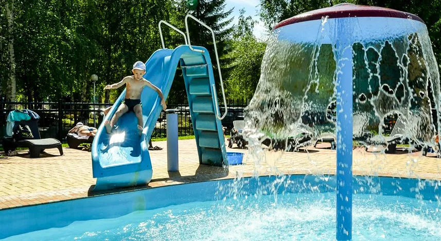 Ежедневно для ребят открыт бассейн – в общем резервуаре для юных посетителей выделена отдельная плескательная зона: ее объем – 11.8 м³, диаметр – 3.5 м, а глубина – 45 см. В ней уровень воды ниже, поэтому плавание даже для малышей будет безопасным. Присутствие детей в бассейне допустимо только под присмотром взрослых.
