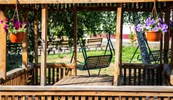 • Разнообразный досуг. В здравнице проводятся концерты на летней эстраде, интерактивные шоу-программы, тематические вечеринки и зажигательные дискотеки. На улице есть мангал для шашлыков и спортивная площадка. Имеется настольный теннис, бильярд, а также сауна с бассейном и SPA-услугами.