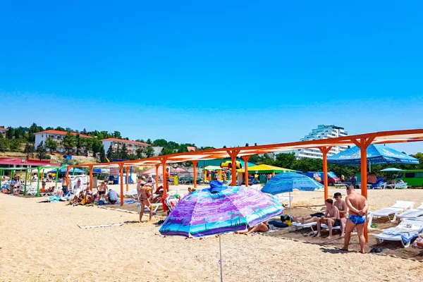 Пляжный отдых будет таким же идеальным, как и всё остальное здесь. Гостям не нужно далеко ходить, чтобы по достоинству оценить теплоту черноморских вод. Всего сто метров отделяют отдыхающих от полностью оборудованного пляжа. Здесь есть душевые кабинки, раздевалки, туалет и другие удобства. Можно провести время с пользой для здоровья и совместить с удовольствием – получить нужную дозу витамина D, а также шикарный равномерный загар. На берегу гостей также ждёт пляжный бар, где предлагаются освежающие напитки и легкие закуски.