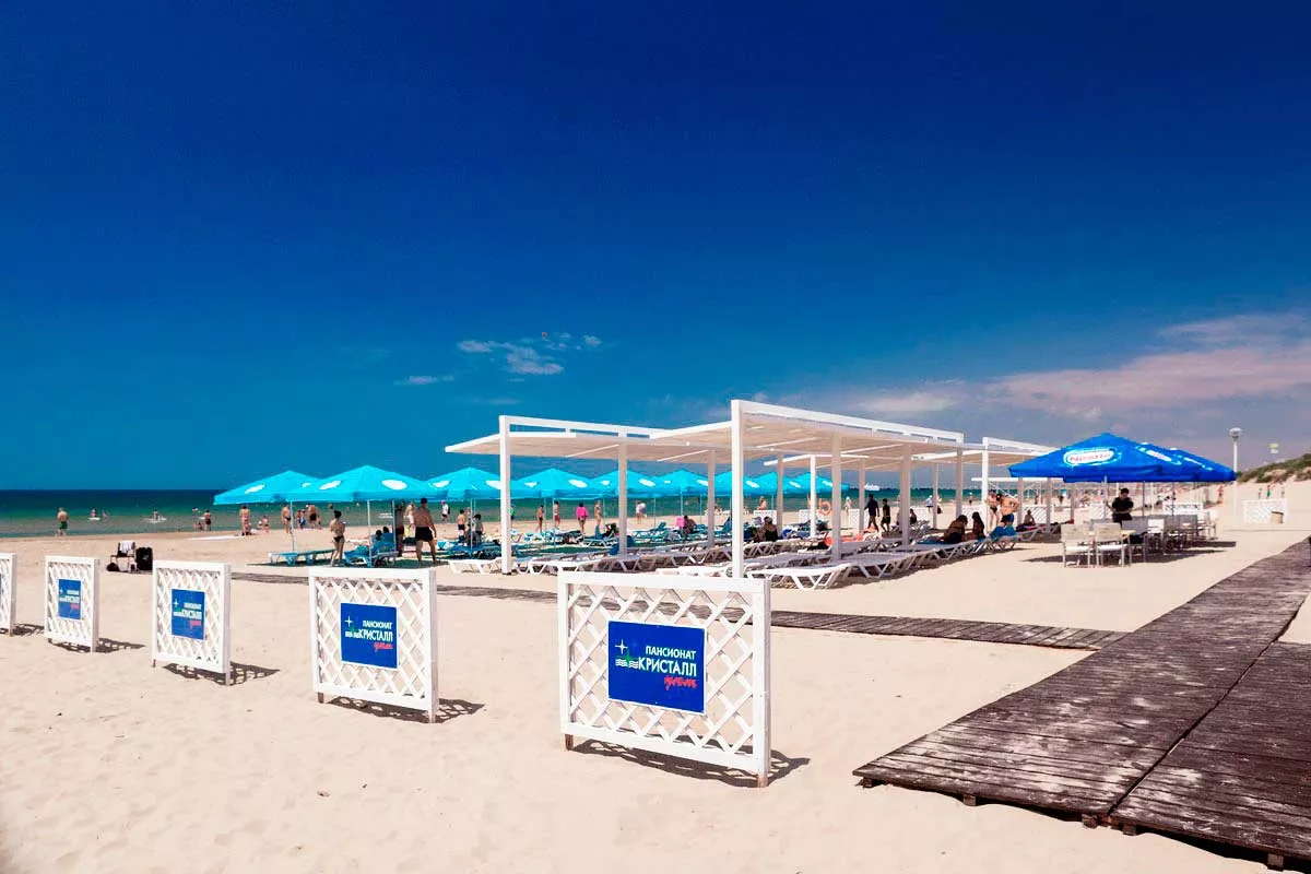 На территории пансионата «Кристалл Уют» г. Анапа найдут для себя развлечения как дети, так и взрослые. В свободном доступе в тёплое время года будут бассейны с пресной водой и водопадами. Любители поддерживать спортивную форму найдут на территории тренажерный зал, волейбольную площадку и уличные тренажеры. В шаговой доступности от пансионата находится собственный пляж. Здесь предусмотрены лежаки, зонты, душевые, туалеты и раздевалки.