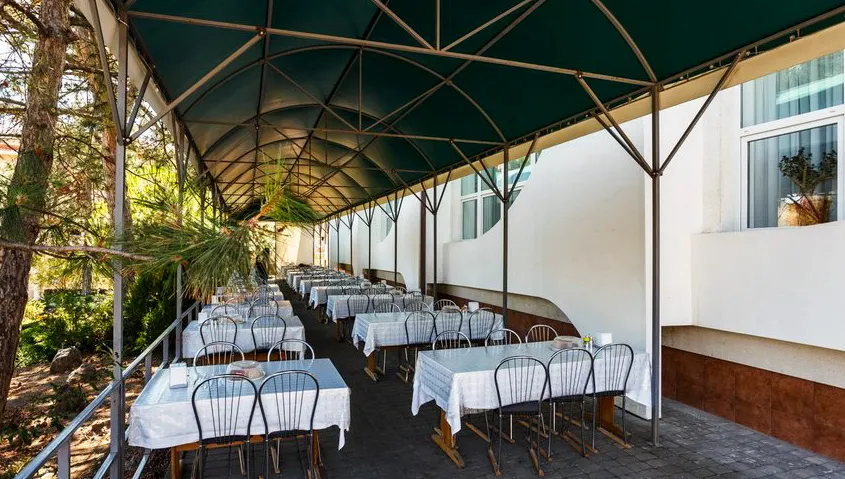 Все приёмы пищи проходят в просторной, светлой и уютной столовой, где создаются настоящие шедевры местной и европейской кухни из самых свежих продуктов от крымских поставщиков. Для гостей, придерживающихся диетического питания, предусмотрены специальные меню.