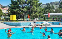 - Работает открытый бассейн с оборудованным местом для отдыха с шезлонгами и навесами.