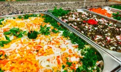 Кулинарное обслуживание организовано по системе «шведский стол», где гости выбирают питание по своему вкусу. Меню включает в себя разнообразные блюда как традиционной русской кухни, так и международной.