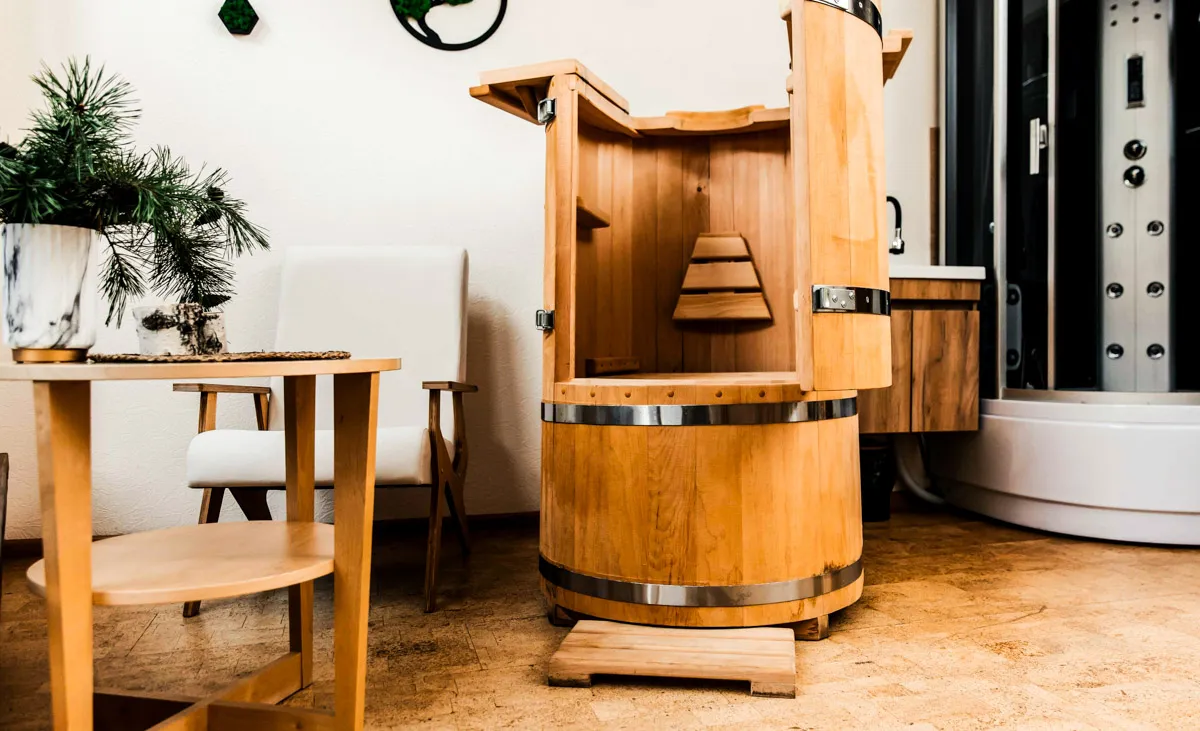 В финской сауне стоит дровяная печь и настоящая скала, благодаря чему воздух там сухой и горячий (до 100 °С), а влажность снижена до 20%. Для большего целебного эффекта в парной установлены соляные лампы. В турецком хамаме, напротив, сохраняется 100%-ная влажность при температуре в 35-55 °C. В такой обстановке проводятся сеансы ароматерапии с эфирными маслами. После процедур следует постепенное охлаждение в специальной купели.