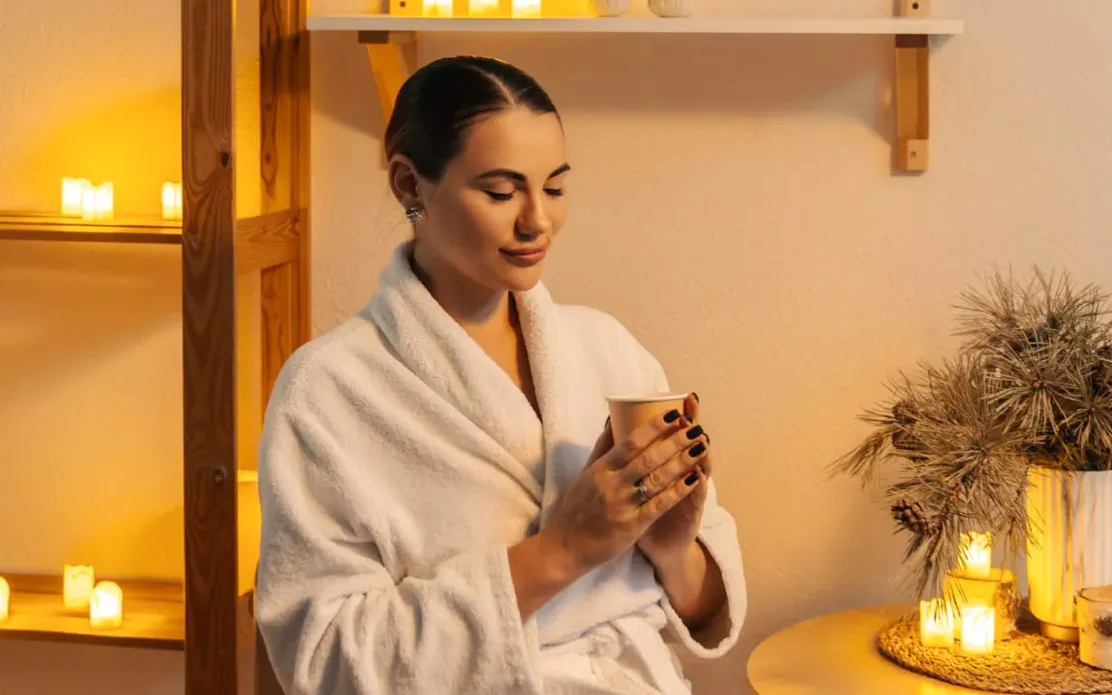 Процедуры: коллагеновые обертывание и маска, аромапилинг, уход за лицом и кистями рук, массаж лица и релаксирующий массаж с маслами, травяной чай с медом.