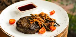 На столы подаются разнообразные изысканные угощения, приготовленные из натуральных продуктов, выращенных на фермах и угодьях Горного Алтая. В процессе создания блюд повара воплощают в них уникальные кулинарные традиции региона. На шведской линии можно увидеть как знакомую домашнюю еду, так и новые для многих деликатесы: колбу, таймень, хариуса, баранину, маралятину и другие наименования. Для любителей сладостей создаются вкуснейшие десерты и ароматная свежая выпечка. Над лакомствами трудится собственный кондитер.