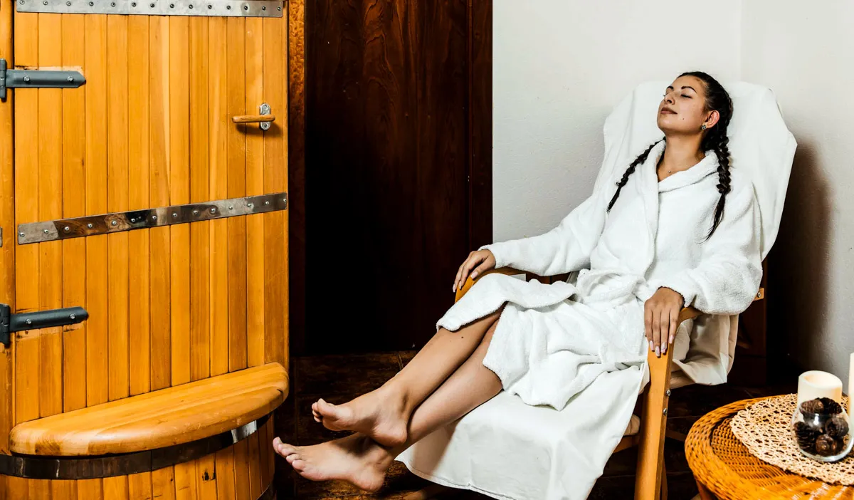 В финской сауне стоит дровяная печь и настоящая скала, благодаря чему воздух там сухой и горячий (до 100 °С), а влажность снижена до 20%. Для большего целебного эффекта в парной установлены соляные лампы. В турецком хамаме, напротив, сохраняется 100%-ная влажность при температуре в 35-55 °C. В такой обстановке проводятся сеансы ароматерапии с эфирными маслами. После процедур следует постепенное охлаждение в специальной купели.