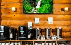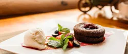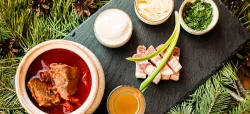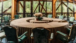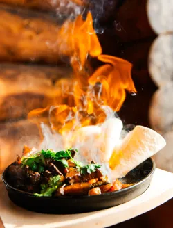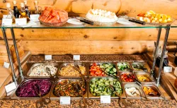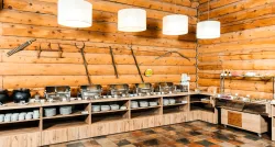 На столы подаются разнообразные изысканные угощения, приготовленные из натуральных продуктов, выращенных на фермах и угодьях Горного Алтая. В процессе создания блюд повара воплощают в них уникальные кулинарные традиции региона. На шведской линии можно увидеть как знакомую домашнюю еду, так и новые для многих деликатесы: колбу, таймень, хариуса, баранину, маралятину и другие наименования. Для любителей сладостей создаются вкуснейшие десерты и ароматная свежая выпечка. Над лакомствами трудится собственный кондитер.