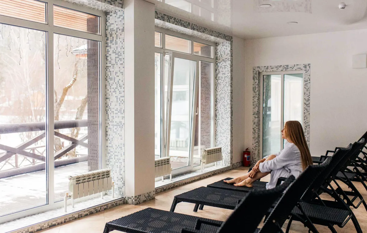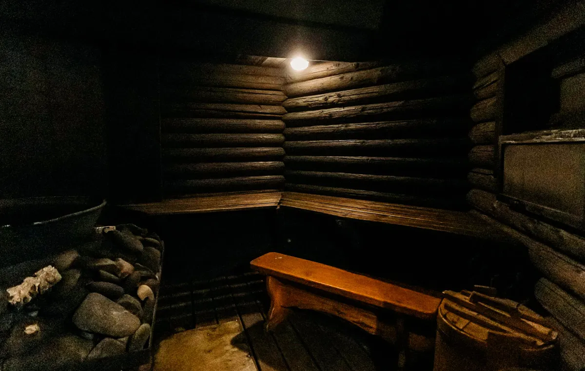В финской сауне стоит дровяная печь и настоящая скала, благодаря чему воздух там сухой и горячий (до 100 °С), а влажность снижена до 20%. Для большего целебного эффекта в парной установлены соляные лампы. В турецком хамаме, напротив, сохраняется 100%-ная влажность при температуре в 35-55 °C. В такой обстановке проводятся сеансы ароматерапии с эфирными маслами. После процедур следует постепенное охлаждение в специальной купели.