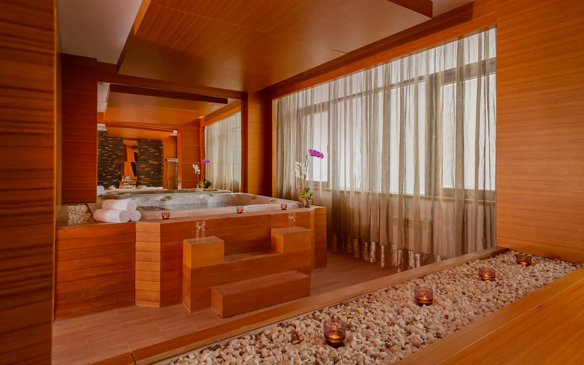 Центр вмещает 5 саун, здесь есть травяная и финская сауны, а также лакониум и хамам. На территории есть соляной грот, который поможет избавиться вам от последствий простудных заболеваний и аллергии. Специалисты центра готовы провести для вас сеанс тайского массажа. Все процедуры проводятся с использованием лицензированной люксовой косметики, что гарантирует вам максимально возможный положительный эффект.