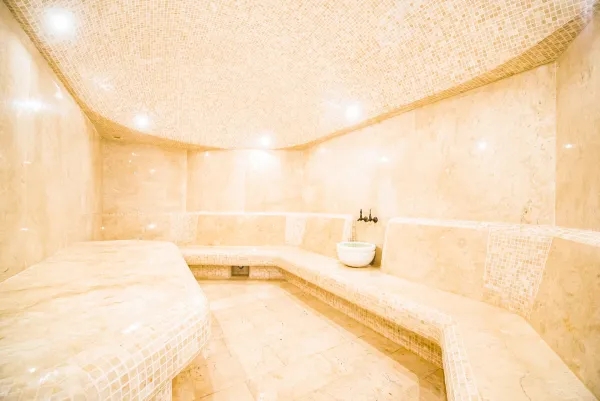 Хамам, или турецкая баня, в отеле представляет собой традиционную парную с высокой влажностью и температурой. Посещение хамама способствует глубокому очищению кожи, улучшению кровообращения и расслаблению мышц. В комплексе также имеется купель с холодной водой для контрастных процедур, что усиливает эффект оздоровления.