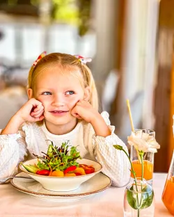 Для юных гостей предусмотрена специальная детская линия в ресторане. Даже самые капризные малютки смогут найти вкусности для утоления своего голода.